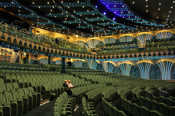 Auf meinen sieben letzten Kreuzfahrten mit MSC begeisterten mich die Theateraufführungen sehr, besonders auf der MSC Divina. Da die Divina ziemlich gut auf den amerikanischen Markt zugeschnitten ist, und sie ganzjährig ab Miami Kreuzfahrten in die Karibik anbietet, sind dementsprechend auch die Aufführungen auf das amerikanische Publikum abgestimmt. Shows wie Alice in the Wonderland, oder Pirates of the Caribbean waren auf unserer Kreuzfahrt gang und gäbe.