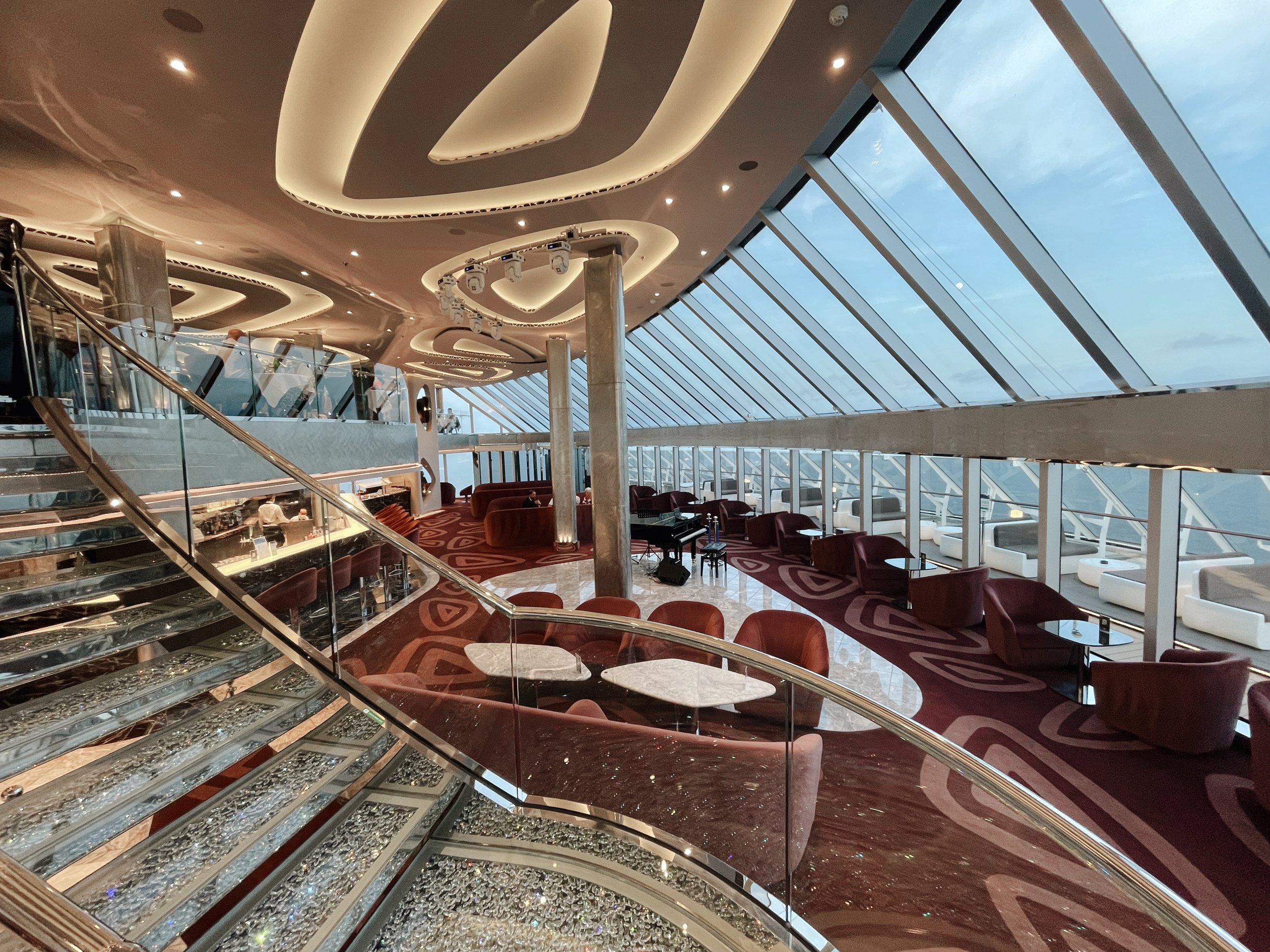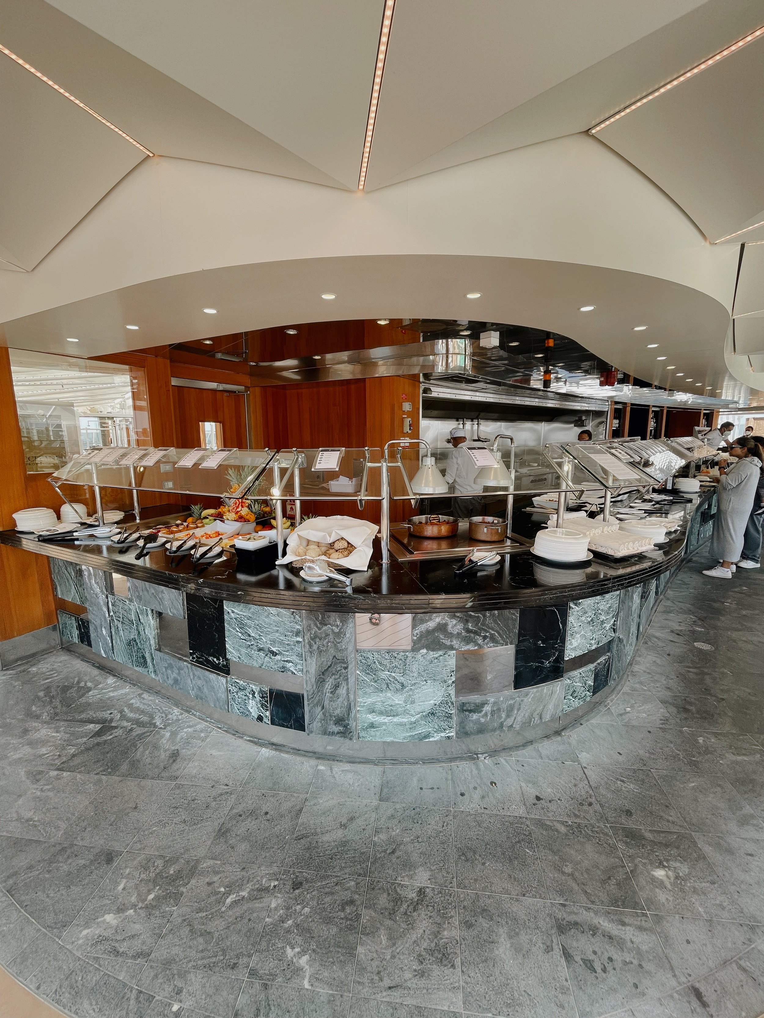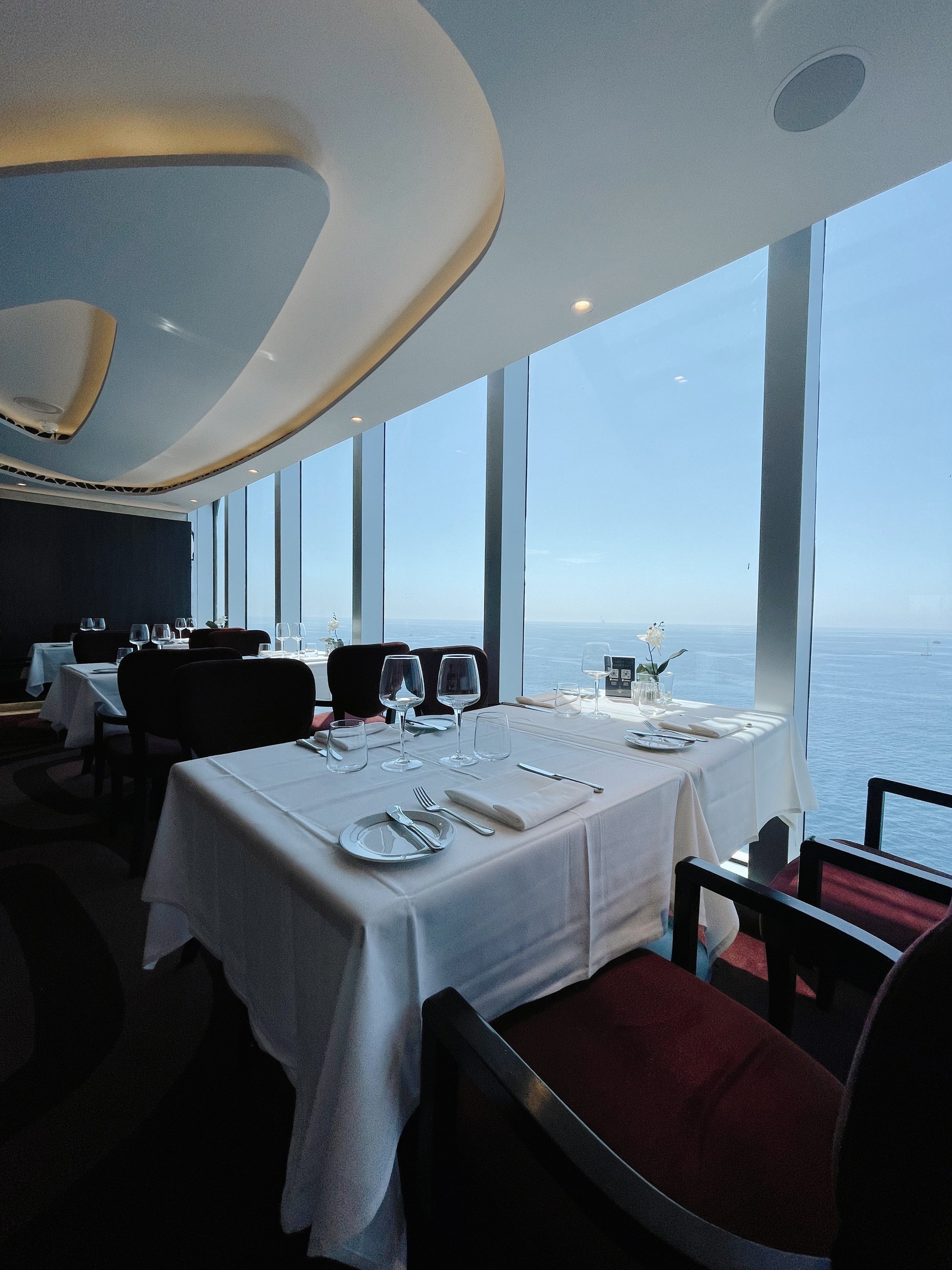 Direkt oberhalb der Lounge befindet sich das Yacht Club Restaurant. Auch hier bieten die grossen Panoramafenster atemberaubende Blick auf die offene See. Zum Frühstück, Mittag- und Abendessen geniessen die Gäste eine grossartige Auswahl an Speisen. Ganz wichtig: es gibt keine feste Essensitzung sondern man kann flexibel zur gewünschten Uhrzeit essen gehen.