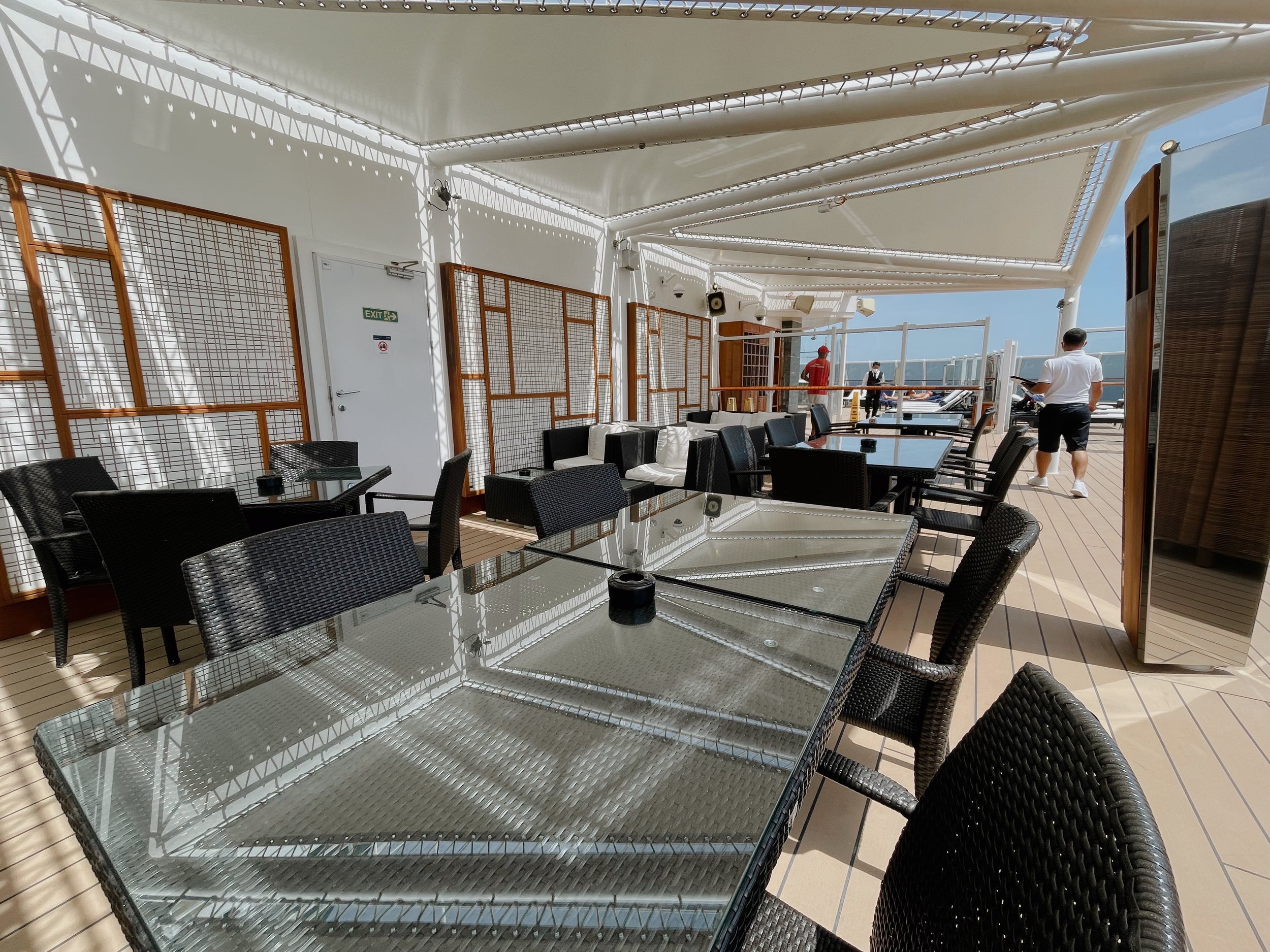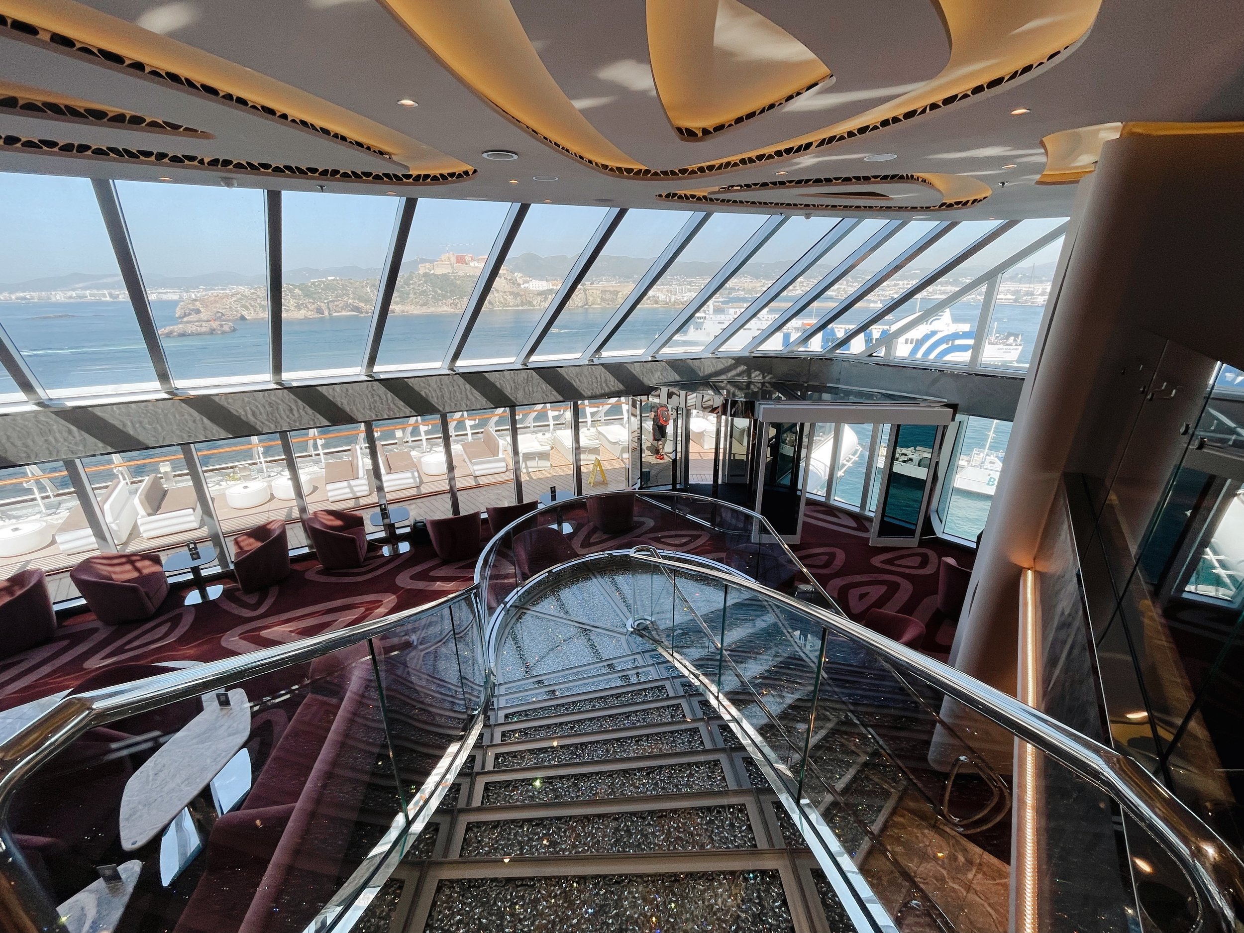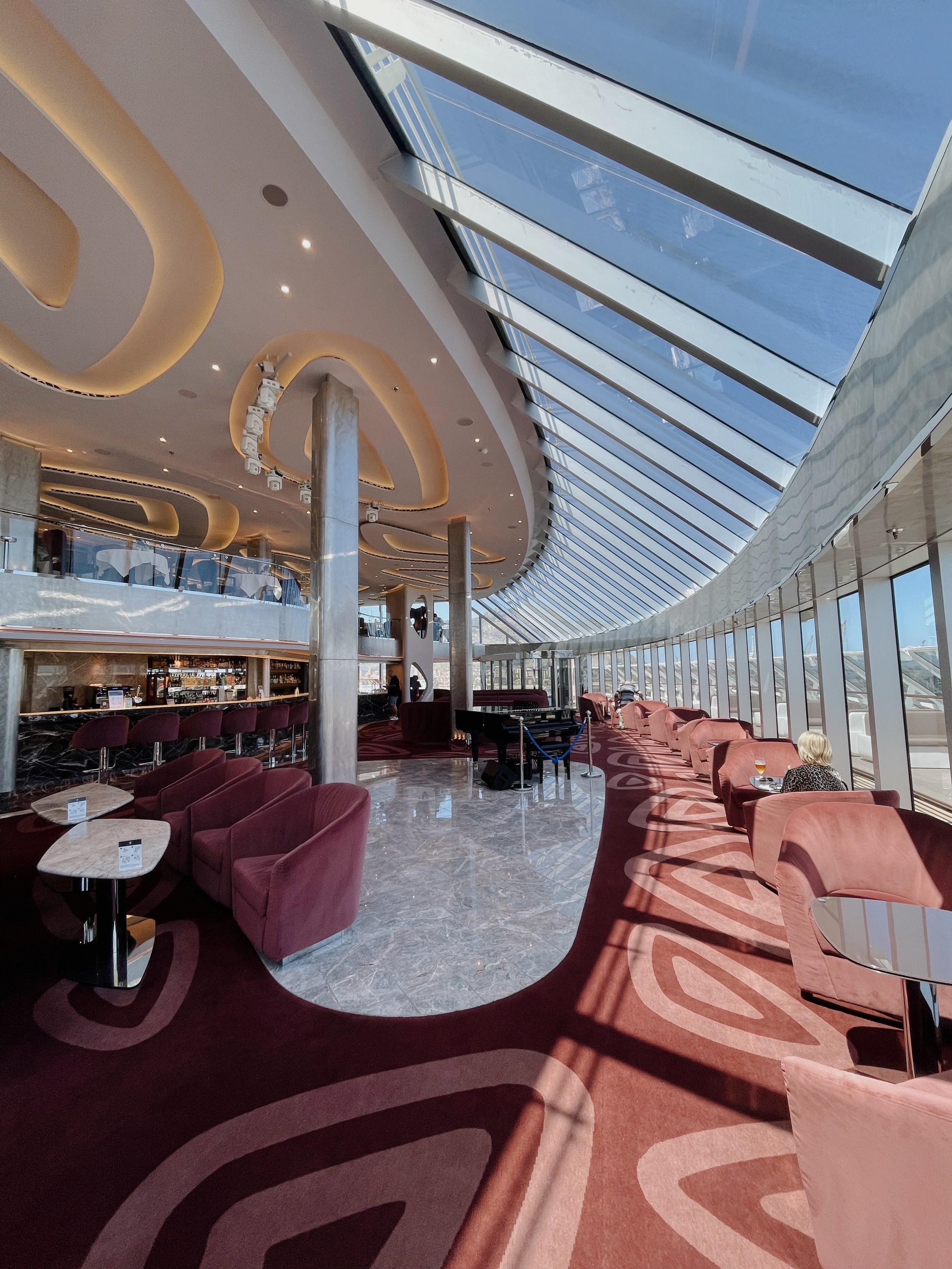Direkt oberhalb der Lounge befindet sich das Yacht Club Restaurant. Auch hier bieten die grossen Panoramafenster atemberaubende Blick auf die offene See. Zum Frühstück, Mittag- und Abendessen geniessen die Gäste eine grossartige Auswahl an Speisen. Ganz wichtig: es gibt keine feste Essensitzung sondern man kann flexibel zur gewünschten Uhrzeit essen gehen.