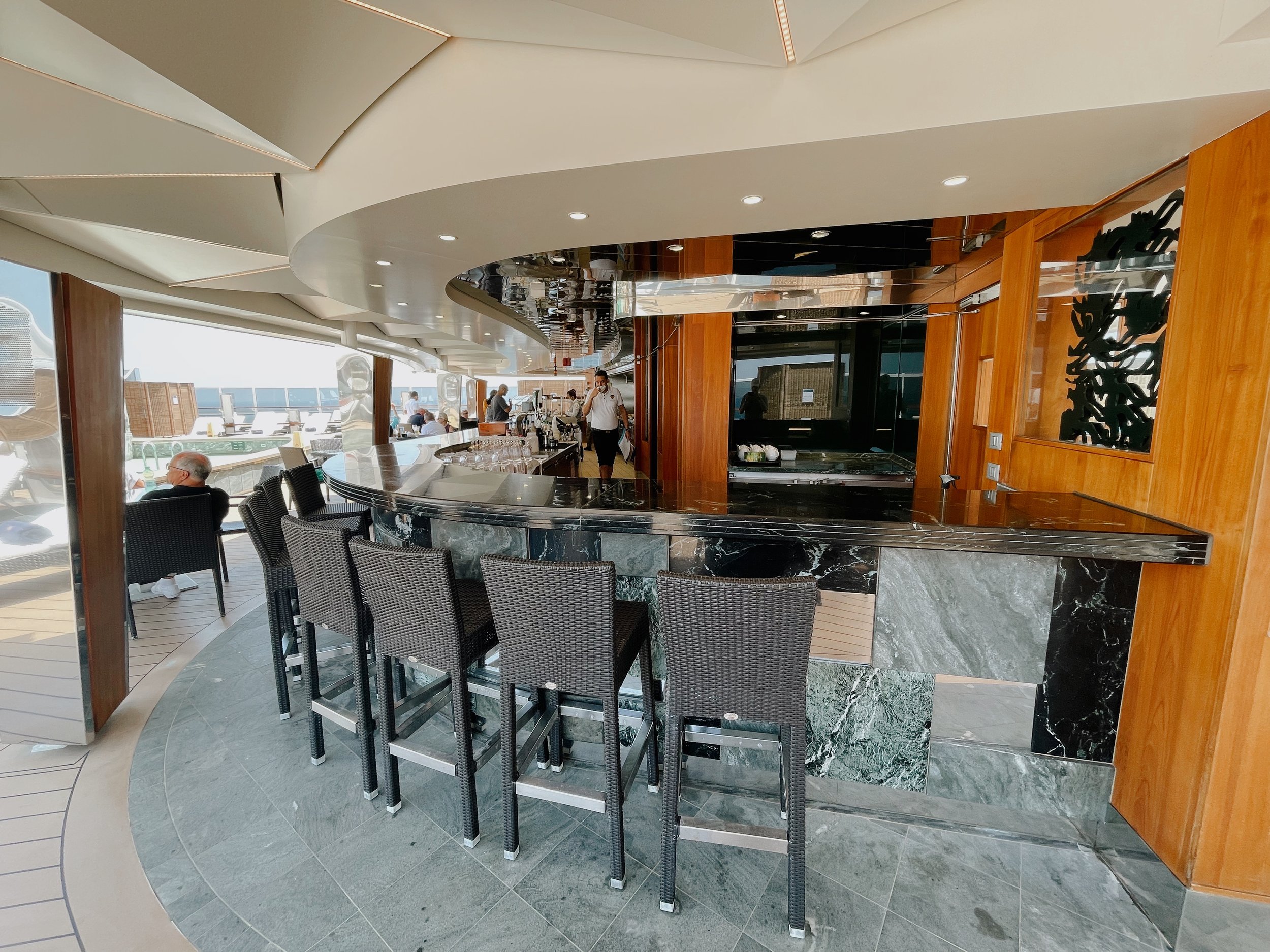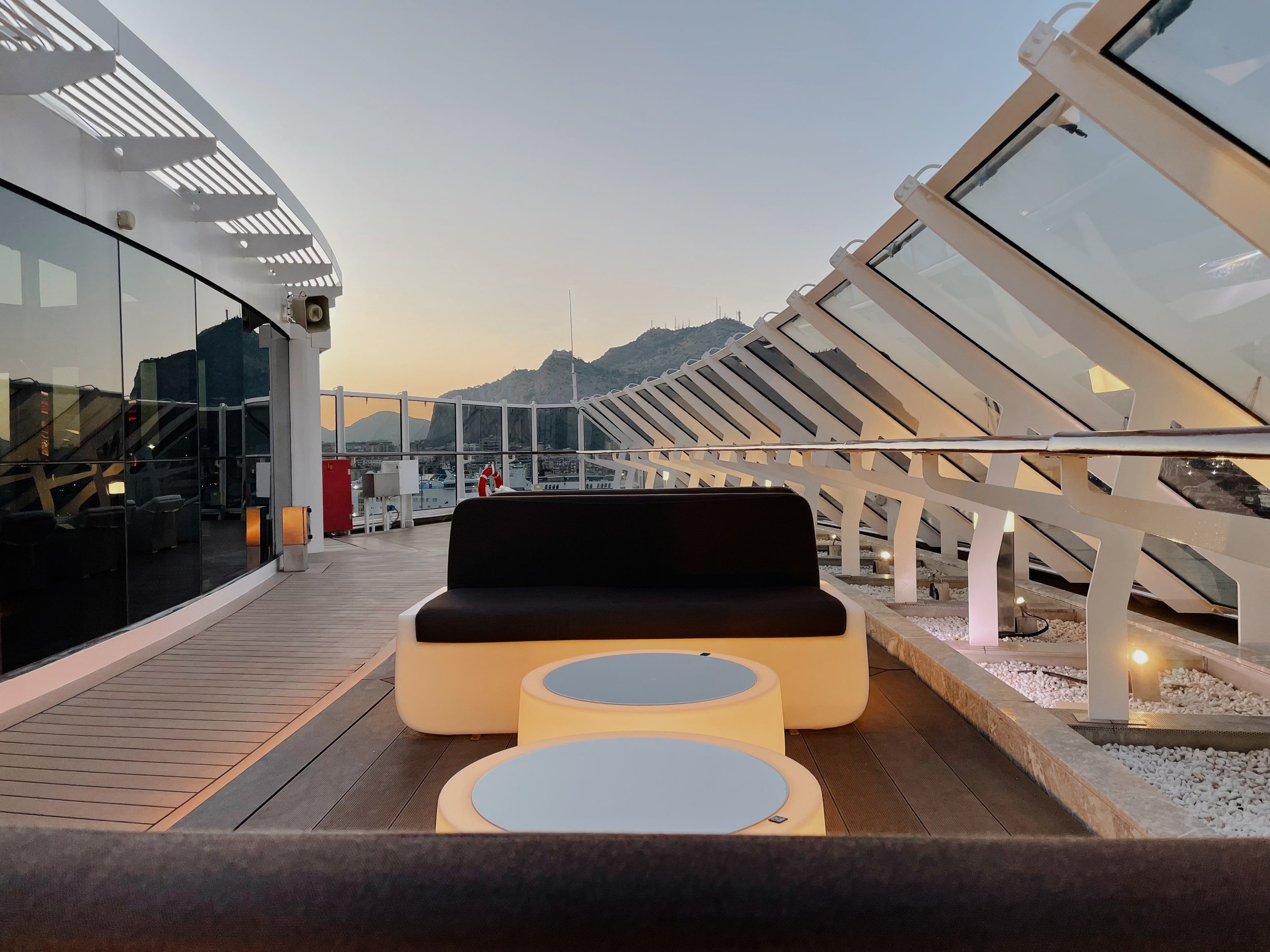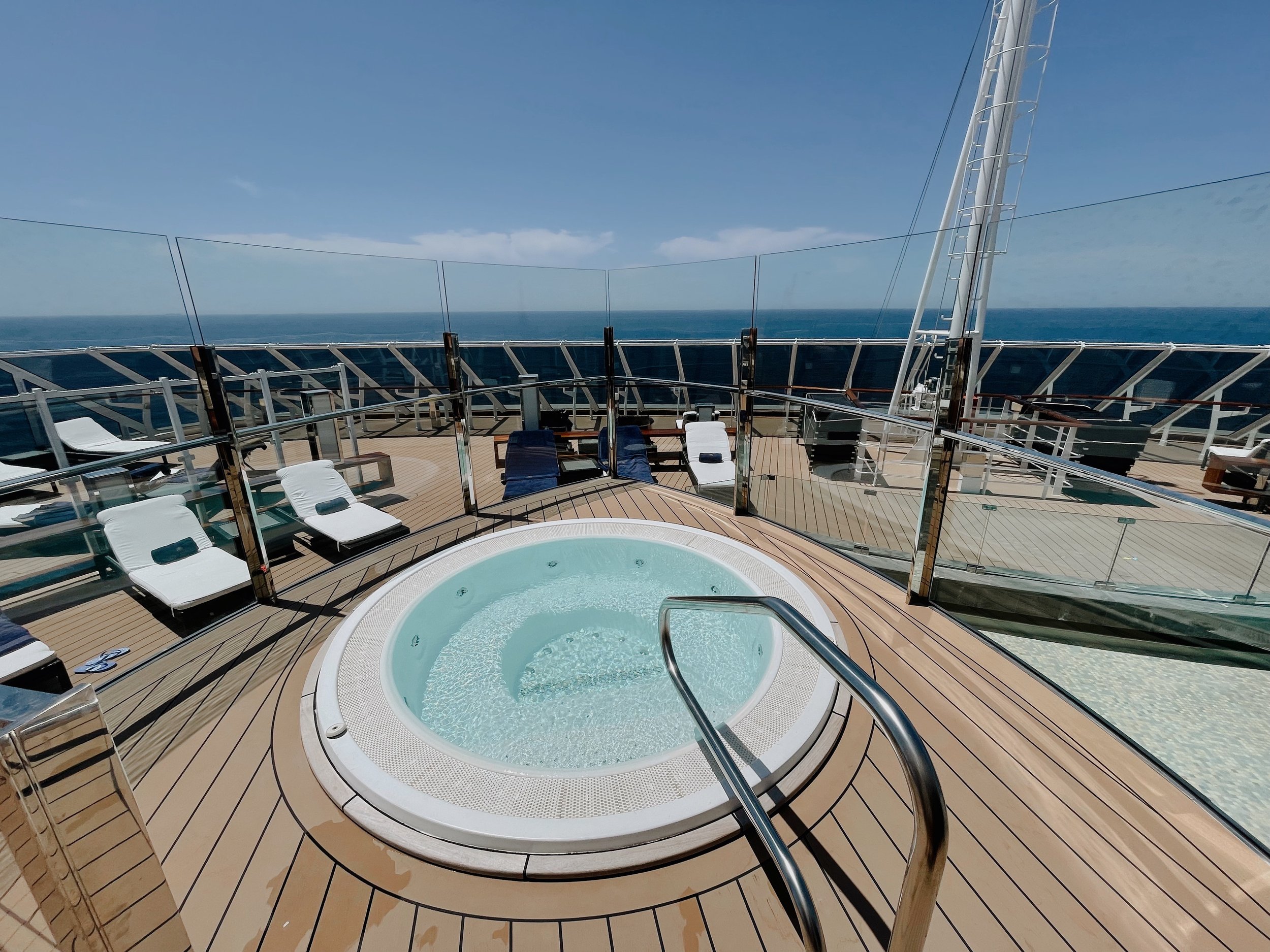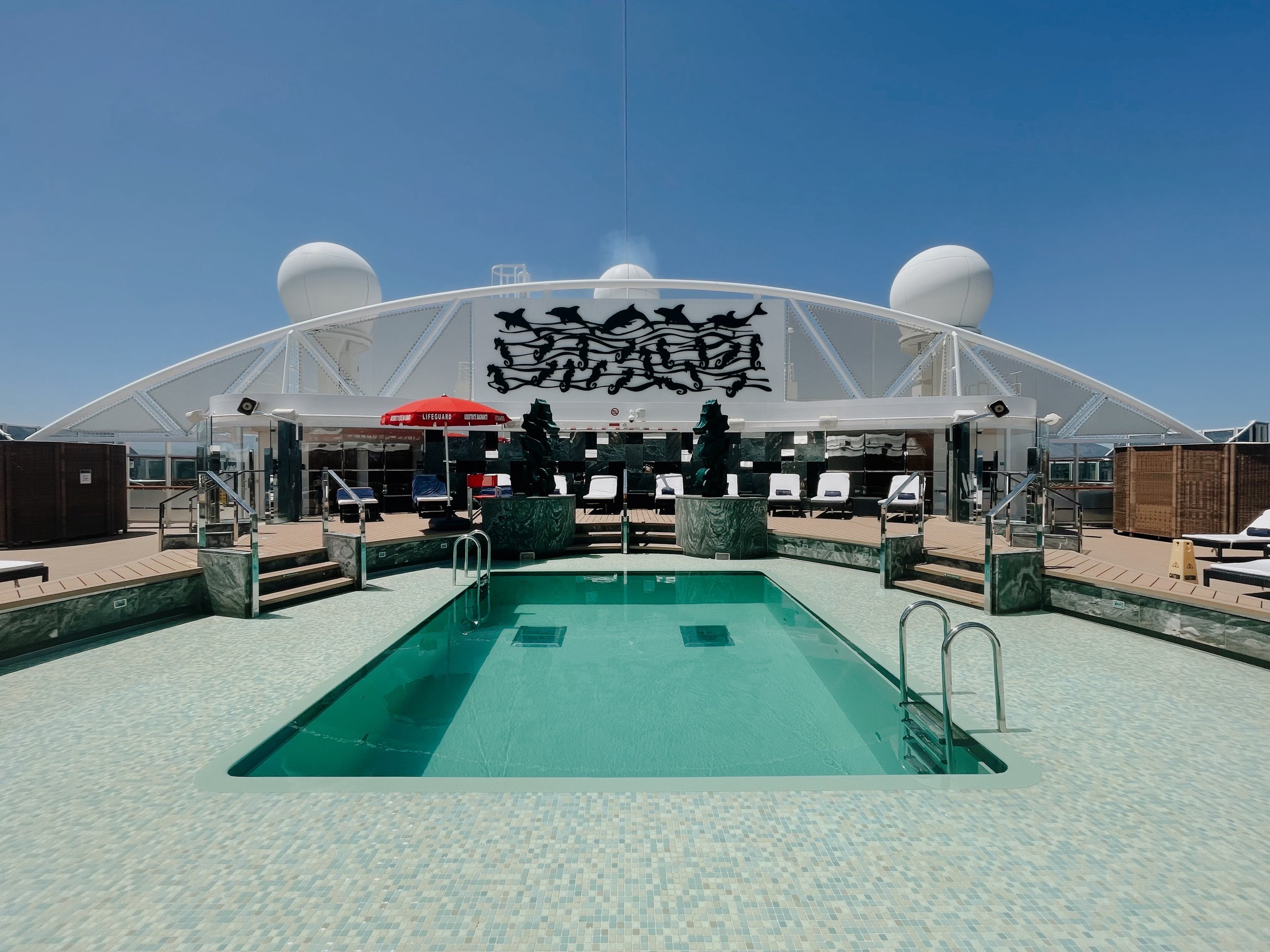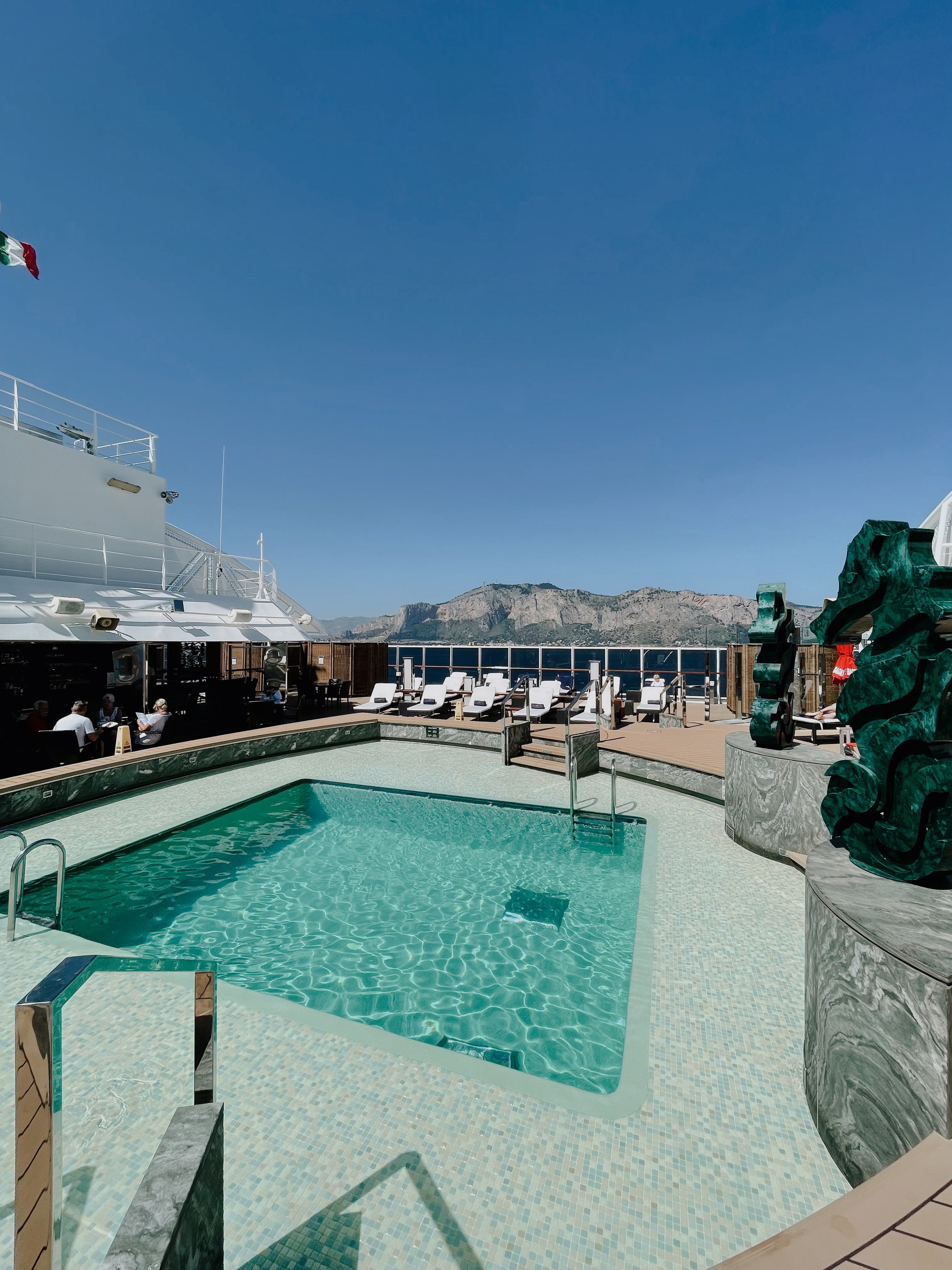 Auf Deck 19 schliesslich befindet sich das The One Pool Deck. Es befindet sich ein kleinerer Pool, zwei Whirlpools sowie zahlreiche Liegen, Lounges und Cabanas auf dem den MSC Yacht Club vorbehaltenen Sonnendeck. Zum Frühstück oder Mittagessen können die Gäste auch unter freiem Himmel vom Buffetbereich zahlreiche Speisen auswählen. Gegrillter Fisch oder köstliche Burger werden vor Ort frisch zubereitet. Mein Highlight: der Cappuccino zum Frühstück bei angenehmen Sommertemperaturen. Übrigens bietet das Sonnendeck auch Sitzplätze im Schatten und Rund um die Uhr werdet ihr von den Butler verwöhnt.